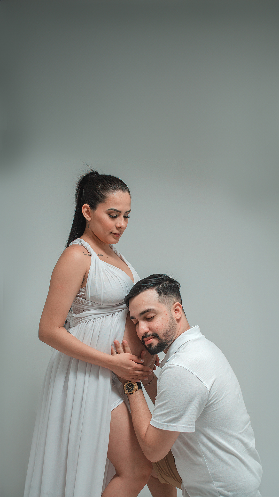gestante ensaio estante fotos no estudio gestante vestido branco ensaio fundo branco